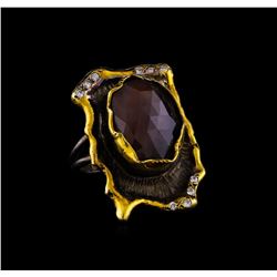 One of a kind high fashion sterling silver Ring weighing 12.3 grams. Black Antique texture. Containing: Lemon Quartz, White Crystal. This sterling sil