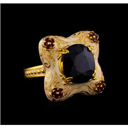 One of a kind high fashion sterling silver Ring weighing 12 grams. Containing: Sapphire, White Enamel Inlay, Red Enamel Inlay. This sterling silver pr