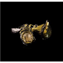 One of a kind high fashion sterling silver Ring weighing 22.6 grams. Black Antique texture. Containing: Peach Quartz, Green Quartz. This sterling silv