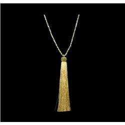 High end designer jewelry. Leather Tassel Square Pendant Chain Necklace - Gold Plated. Gold Plated Metal/3" Ext Clasp. Blue/ Gold. 28/6inches. ...