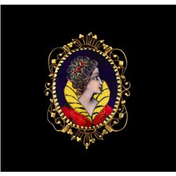 One electronically tested 14KT yellow gold ladies cast & assembled cameo brooch/pendant. The brooch/pendant features a blue enamel cameo depicti...