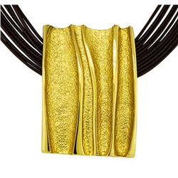 High end designer jewelry. Rectangle Pendant Multi Strand Necklace - Gold Plated. Gold Plated/3" Ext Clasp. Gold/ Brown. 16inches. Total Weight...