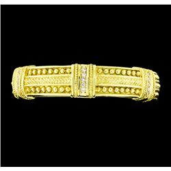 One electronically tested 18KT yellow gold ladies cast & assembled diamond cuff bracelet. Six and one-quarter inch wearable length cuff style br...