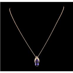 3.52 ctw Tanzanite and Diamond Pendant With Chain - 14KT Rose Gold907 - 3.52 ctw Tanzanite and Diamond Pendant With Chain - 14KT Rose Gold