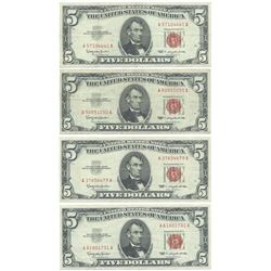 One 1963 $5 Fine Red Seal Bill Lot of 4.