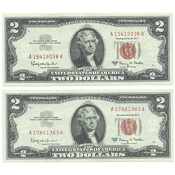 One 1963 $2 Uncirculated Red Seal Bill Lot of 2.