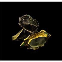 One of a kind high fashion sterling silver Ring weighing 21 grams. Black Antique texture. Containing: Lemon Quartz, Green Crystal. This sterling silve