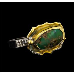 One of a kind high fashion sterling silver Ring weighing 13.5 grams. Black Antique texture. Containing: Created Turquoise, White Crystal. This sterlin