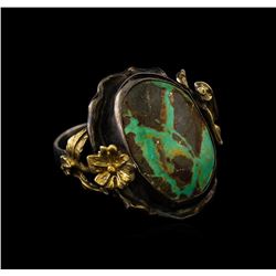 One of a kind high fashion sterling silver Ring weighing 23 grams. Black Antique texture. Containing: Turquoise. This sterling silver promises a lasti