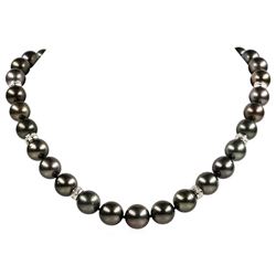 One graduated single strand pearl necklace 19.5' princess length, knotted with a tongue clasp & foldover safety containing 33 Tahitian pearl...