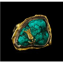 One of a kind high fashion sterling silver Ring weighing 38.5 grams. Containing: Imitation Turquoise, White Crystal. This sterling silver promises a l
