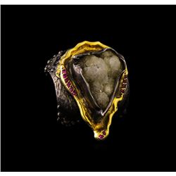 One of a kind high fashion sterling silver Ring weighing 30.8 grams. Black Antique texture. Containing: Crystal Agate, Red Crystal. This sterling silv