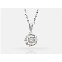 One electronically tested platinum ladies cast diamond ring with a bright polish finish. The featured diamond is set within an elaborate diamond ribbo