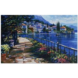 "Sunlit Stroll" is a limited edition hand embellished giclee on canvas with a crackled vecchia finish by Howard Behrens (1933-2014), numbe...