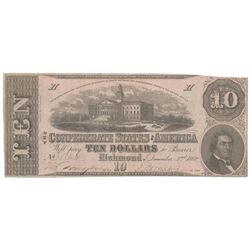 One 1862 $10 The Confederate States of America Note T-52 CC