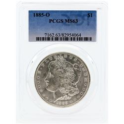 One 1885-O PCGS MS63 Morgan Silver Dollar.