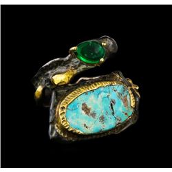 One of a kind high fashion sterling silver Ring weighing 12 grams. Containing: Turquoise, Green Crystal. This sterling silver promises a lasting shine