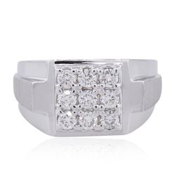 One electronically tested 14KT white gold men's combination cast & assembled diamond ring with a bright polish finish. Identified with marki...