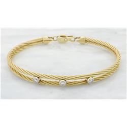 One electronically tested 14KT white gold ladies cast diamond ring with a cathedral shank with a bright polish finish. Identified with markings of &...