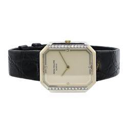 One electronically tested 18KT white gold ladies cast diamond ring with a bright polish finish. Identified with markings of "750". Conditi...