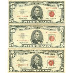 1963 $5 VG/XF Red Seal Note Lot of 3.