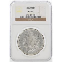 One 1885-O NGC MS63 Morgan Silver Dollar.