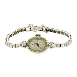 One electronically tested 14KT white gold ladies cast diamond ring with a bright polish finish. Identified with markings of "14K". Conditi...