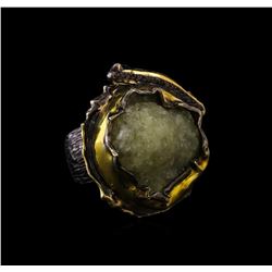 One of a kind high fashion sterling silver Ring weighing 53.8 grams. Black Antique texture. Containing: Crystal Green Lace Agate, Brown Crystal. This
