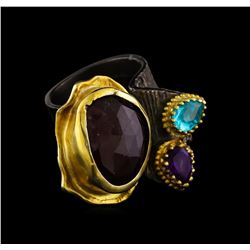 One of a kind high fashion sterling silver Ring weighing 22 grams. Black Antique texture. Containing: Ruby, Amethyst, Cyan Crystal. This sterling silv