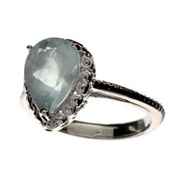 Gov. File: 80356 2.48CT Pear Cut Aquamarine And Platinum Over Sterling Silver Ring Retail Replacement Value: $2.9K Asset Type: Ring Shipping: $19