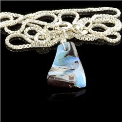 APP: 1k 1.15Gm Natural Freeform Boulder Opal And Sterling Silver Pendant With Chain