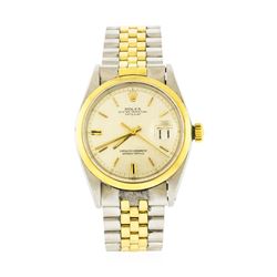 One, vintage Rolex two-tone DateJust wristwatch electronically tested, Circa: 1968, Stainless Steel Case: 36mm oyster, Rolex Signature 14KT yellow gol