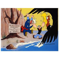 "Sindbad" is a limited edition hand inked and hand painted animation cel with background, numbered and hand signed by Myron Waldman (1908-...