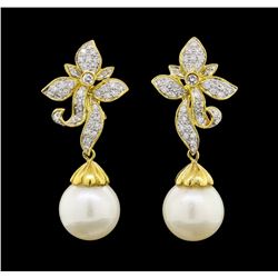 Pearl and Diamond Earrings - 18KT Yellow Gold771 - Pearl and Diamond Earrings - 18KT Yellow Gold