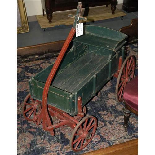 1 STUDEBAKER JR. PAINTED CHILD'S WAGON circa 1910 PACKING AND SHIPPING must be handled by 3rd party shipper. CONDITION REPORT: repainted, flaking to paint.