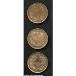 <B>1 Sen trio as follows:</B></I> Meiji 31 (1898), KM-Y20, AU; Meiji 32 (1899), KM-Y20, Unc.; and a Meiji 33 (1900), KM-Y20, Unc. with considerable remaining luster. 3 coins <BR><BR><B>Important notice:</B> Heritage usually auctions material at the rate of 200-250 lots per hour. On some occasions eBay Live bid software or the Internet may not be able to keep up with the pace of the auction. We recommend placing a realistic absentee bid now as insurance to avoid disappointment. Occasionally the auctioneer may eliminate or reject an eBay Live bid, and the auctioneer may also reopen a lot after the close of the eBay live bidding (usually because we missed an audience bid), and may reject your bid even if it shows you as the winning bidder. By bidding via eBay Live, you agree that Heritage may award the lot to another bidder at its sole discretion under the circumstances described above or any other reasonable circumstances. Since eBay bids are not shown to us until we open the lot on the floor, we treat those bids just like floor bids. In most cases the floor responds before the eBay bid is presented to us, due to Internet lag time, so for consistency we have made it a policy that floor bids are always considered first over tie eBay live bids. Also please note that all Heritage lots purchased through eBay Live carry a 20% Buyer's Premium. Please make sure you read the Terms and Conditions before you bid.