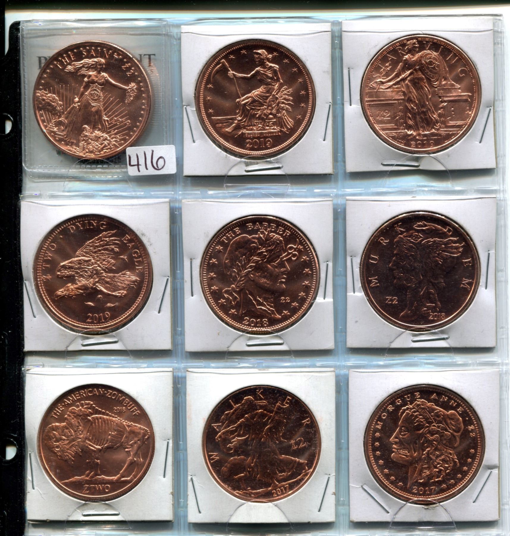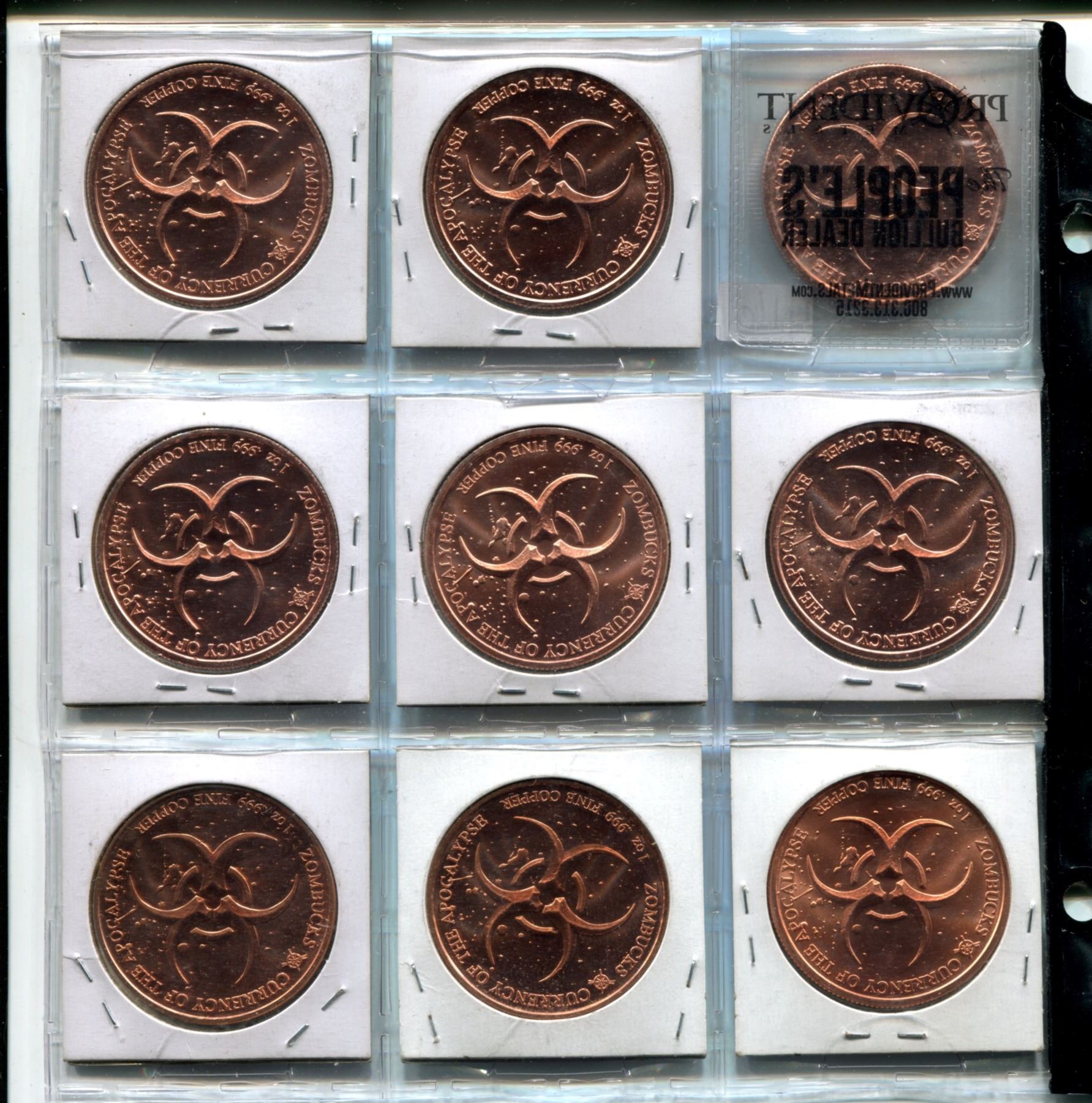 1-Set ZomBucks, “Currency of the Apocalypse” All $2 .999 Fine Copper (1-2017 Morgue Anne) (1-2017 Walker) (1-2018 American ZomBufff) (1-2018 Murk Diem) (1-2018 The Barber) (1-2019 Two Dying Eagle) (1-2019 Starving) (1-2019 Slaved Dollar) (1-2019 The Saint),9-Zombucks $2 dollar coin .999 fine copper
