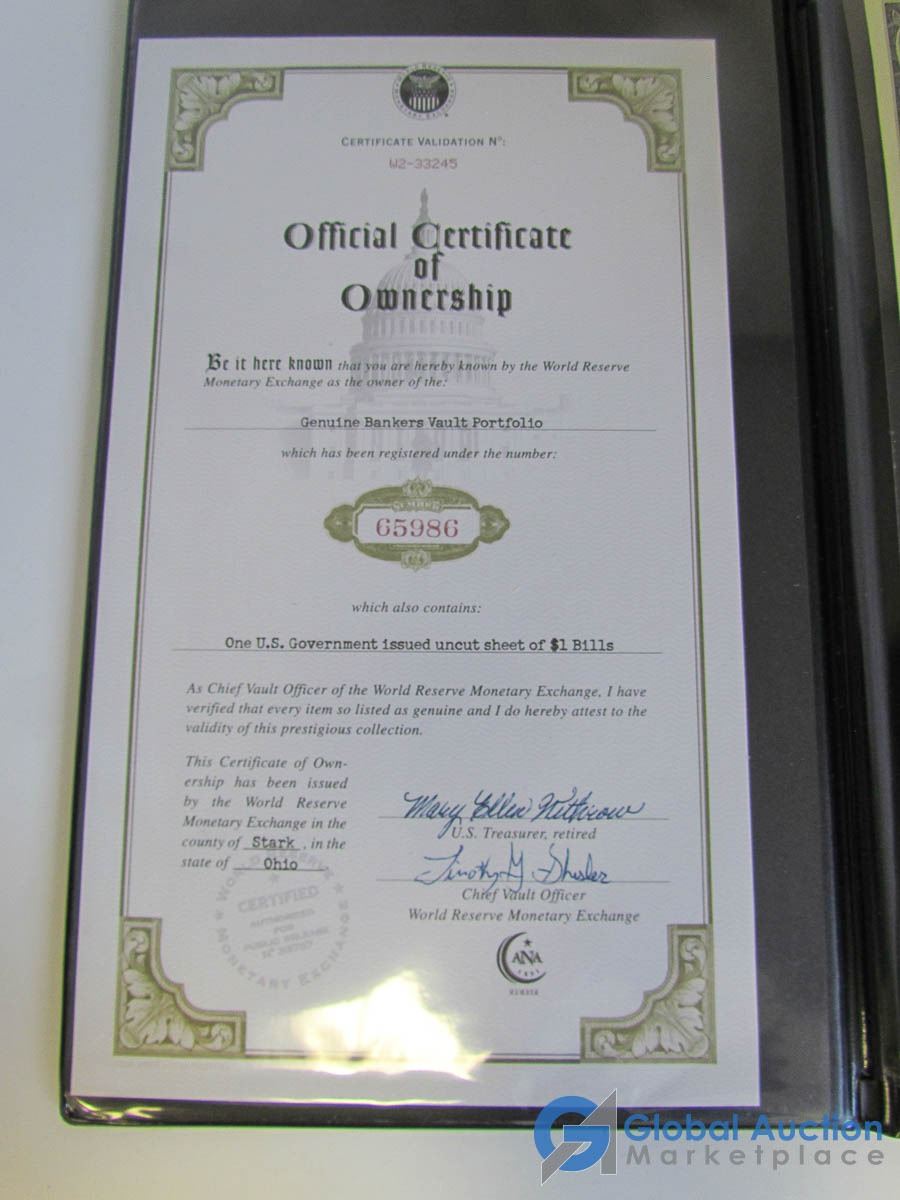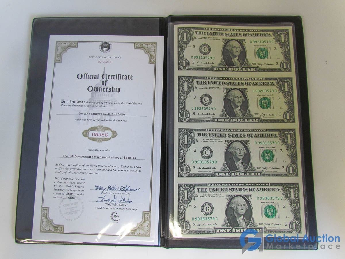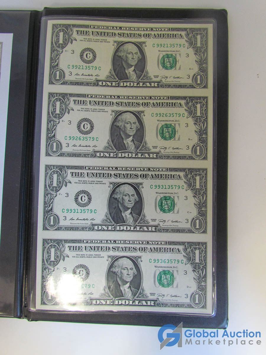 (1) Sheet of US Government Issued Uncut 2009 $1 Bills