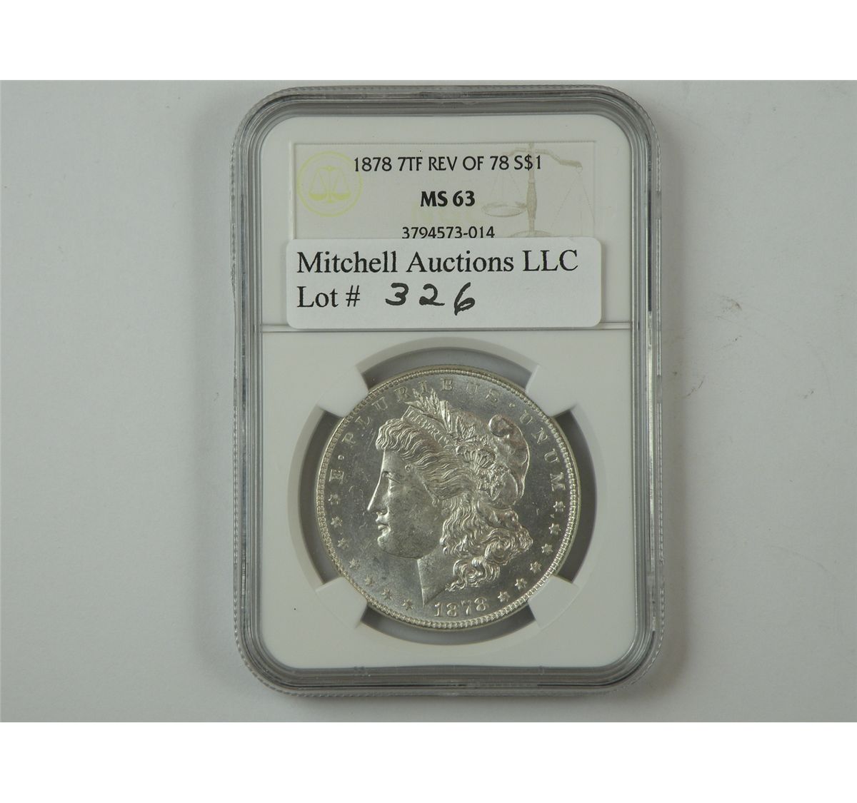 $1 Silver 1878 7TF Reverse of '78. NGC MS63. Nearly a twin to the prior lot.