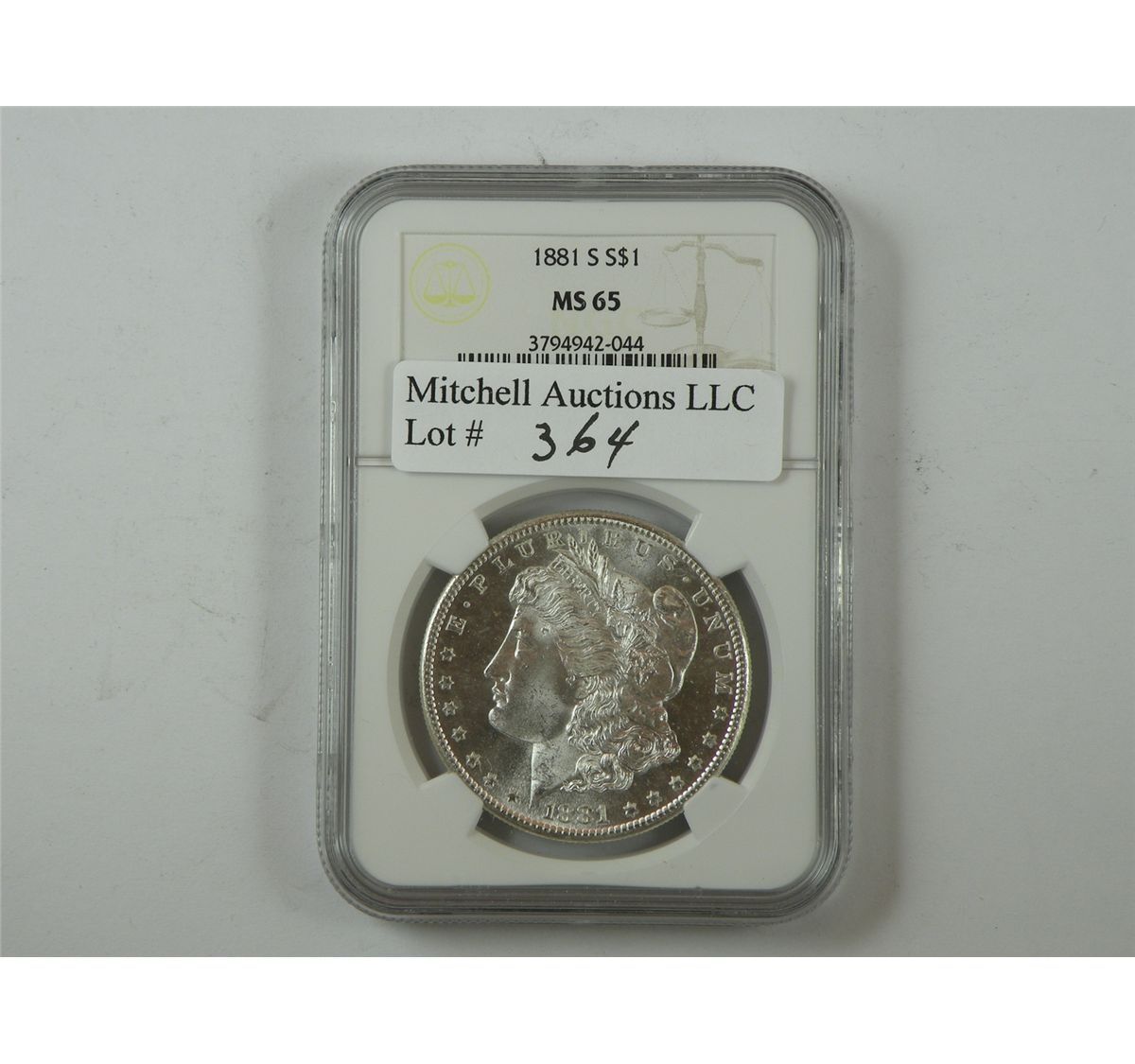 $1 Silver 1881-S NGC MS65. Assertively struck and quite solid for the grade. Est.$125