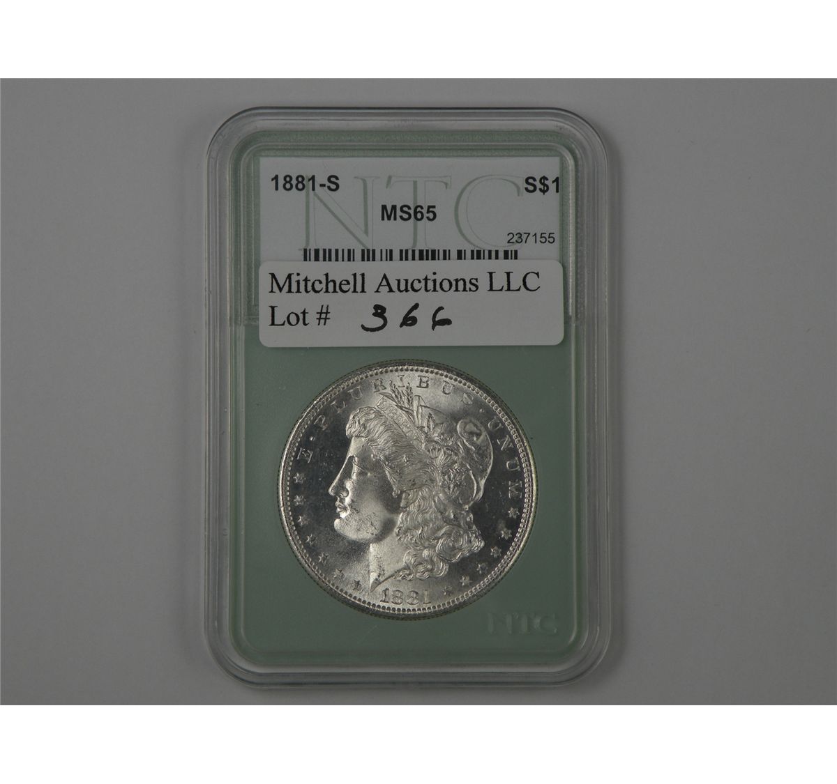 $1 Silver 1881-S NTC MS65. Assertive cartwheel bloom. Est.$110