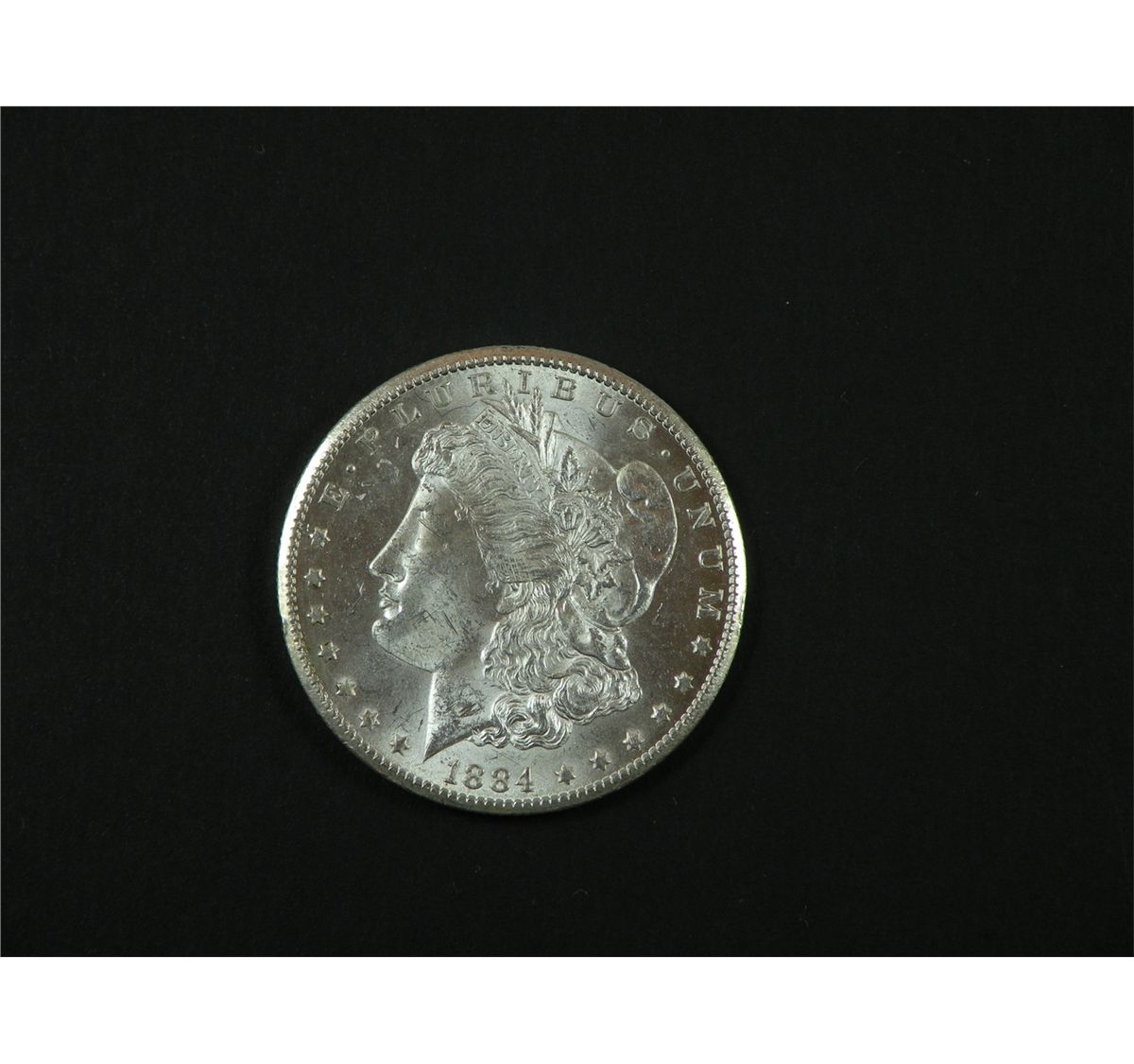 $1 Silver 1884- CC.Br.Unc. and just bordering on a Choice distinction. Satiny and assertively struck. Est.$175