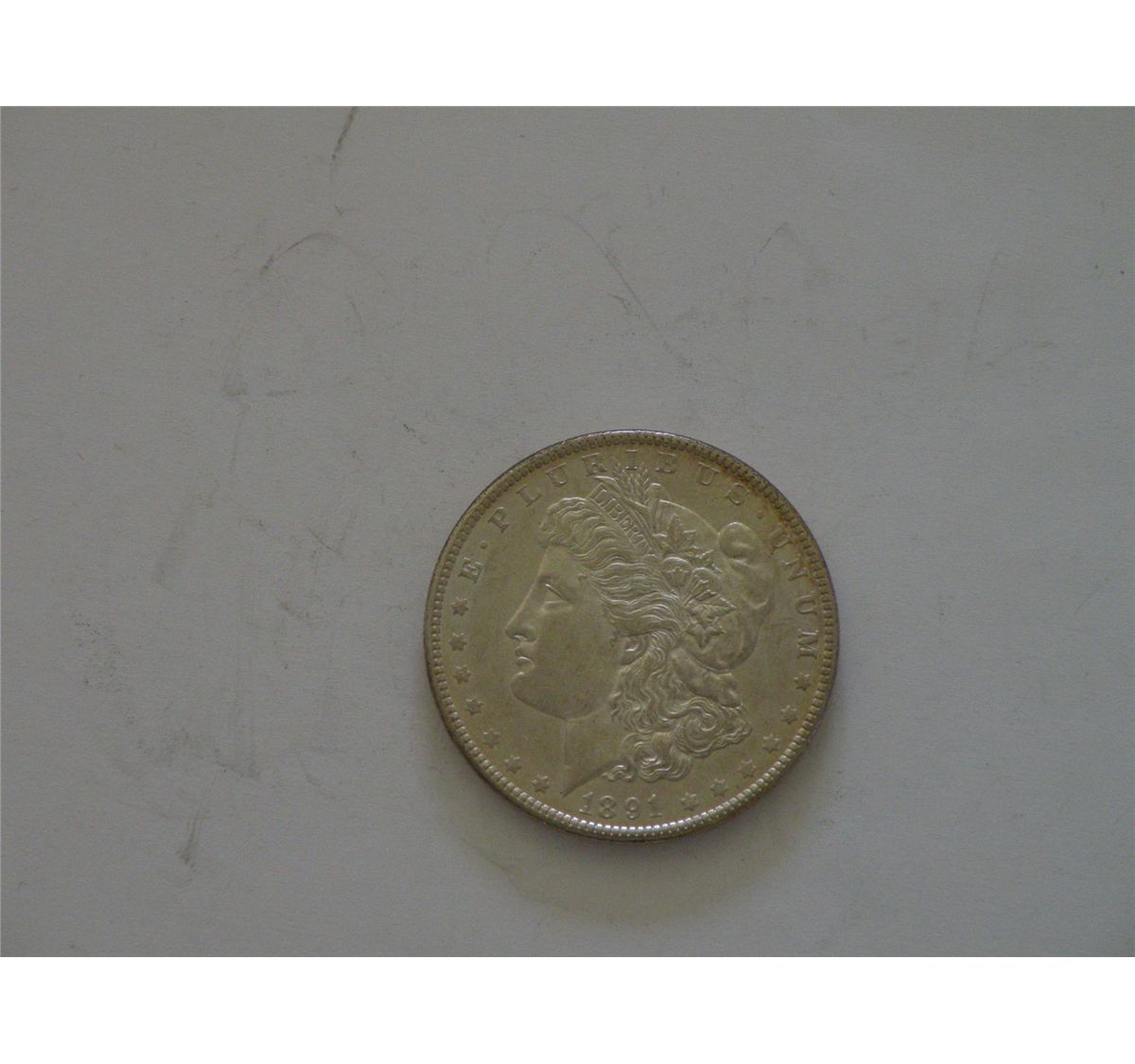 $1 Silver 1891 BU or better. This solid mint state coin enjoys rich mint frost. Est$65