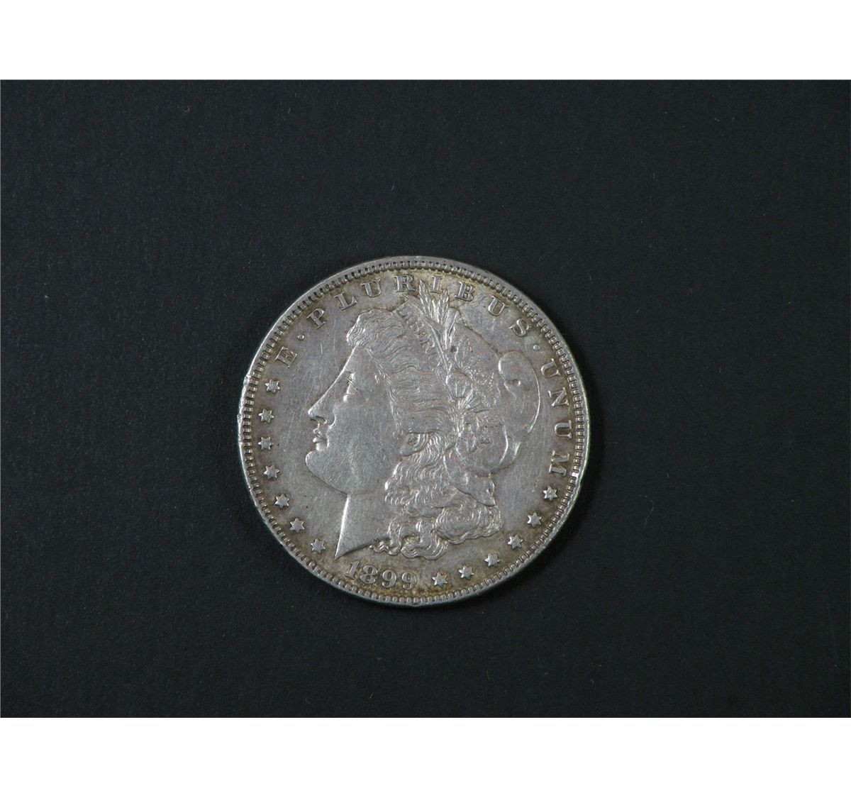 $1 Silver 1899 Extremely Fine to About Uncirculated detail. A small obverse rim mark is evident at 3:00 along with some trivial hints of rim disturbance. A scarce and underrated date. Est.$140