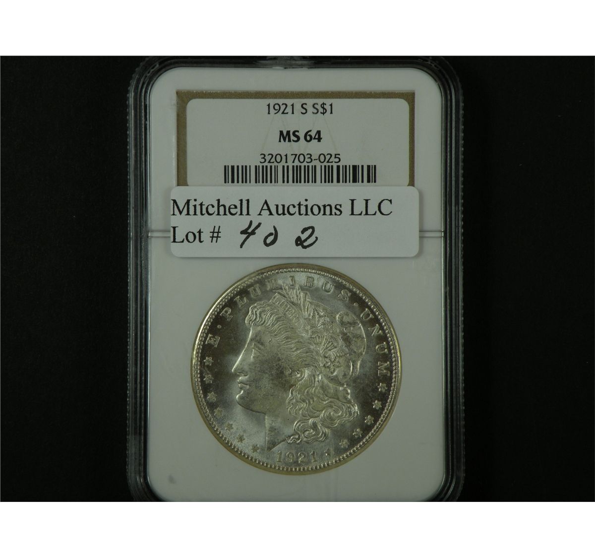 Any items graded by third party grading services (certified lots) are so indicated within the lot descriptions. Other indications of grade are the opinion of Mitchell Auctions LLC. Although we endeavor to be as accurate as possible with regard to grade, such items may be graded higher or lower if submitted to a third party grading service. Feel free to contact our offices prior to the sale for further information and/or more a detailed description of any lot.