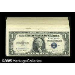 <B>$1 Silver Certificate/Federal Reserve Note Matched Pairs on End Collection. Choice Crisp Uncirculated or Better.</B></I><BR>The same two digits are found on both ends of the serial numbers for these notes, with zeros as the intervening digits. This is a near complete set that has about 40% of its spaces occupied by $1 FRNs.<BR> 92 notes Lot:16701