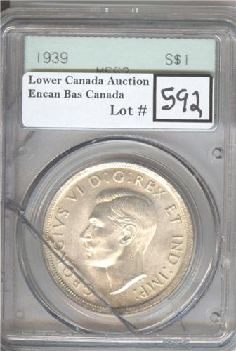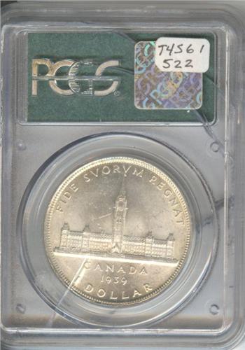 1939 PCGS certified MS-63. Casing is cracked but coin is fine.