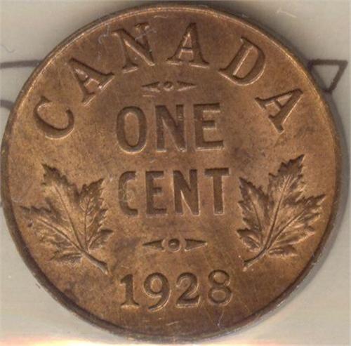 1 Small Cent 1928, ICCS certified MS-63; Red. Lustrous red.