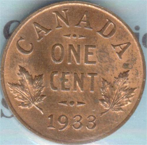 1 Small Cent 1933, CCCS certified MS-63; Red. Lustrous red.