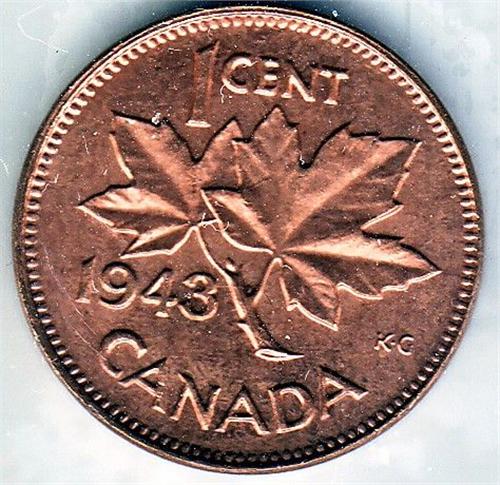 1 Small Cent 1943, ICCS certified MS-64; Red. Strong coin, near full red.